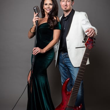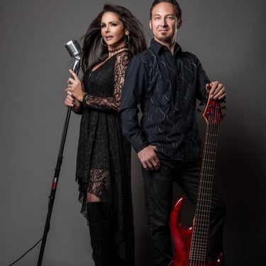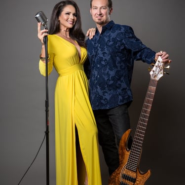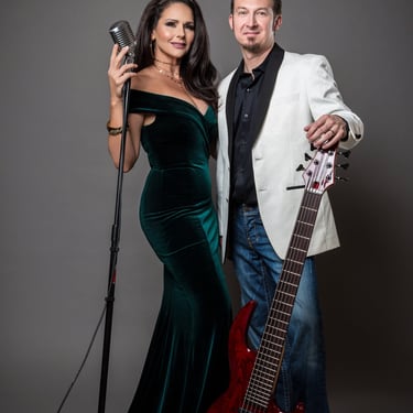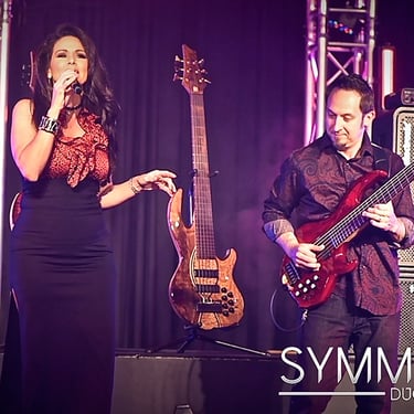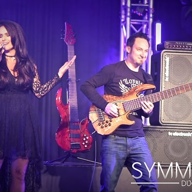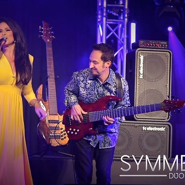 Symmetry Duo pairs Jozef Bobula on bass with Jennifer Lier, a vocalist and performer whose Las Vegas entertainment career includes stage, television, and a Miss Nevada title.