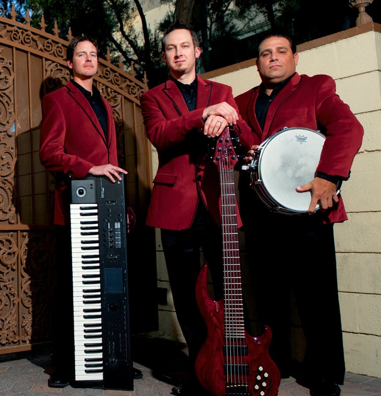 Piano, bass, and drums. The full ensemble experience for larger events, weddings, and upscale corporate functions. All three members are formally trained, professionally active musicians with extensive Las Vegas stage experience.